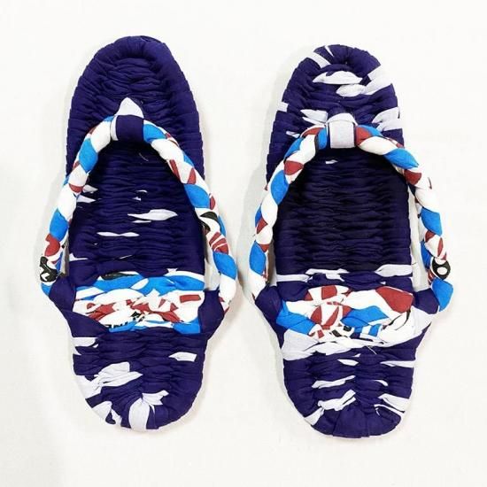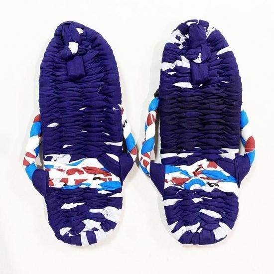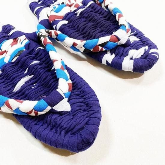 手拭いの生地で編んだ布ぞうりです。生地をたくさん使って作られた、お洒落な布ぞうりです。
