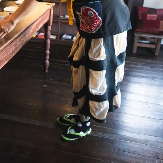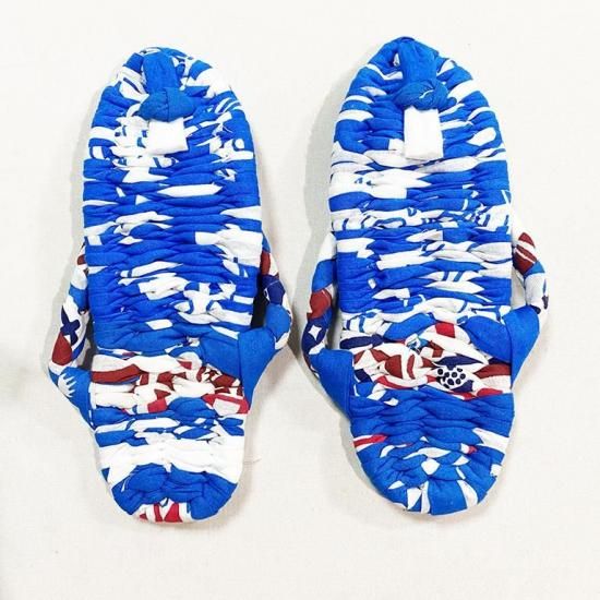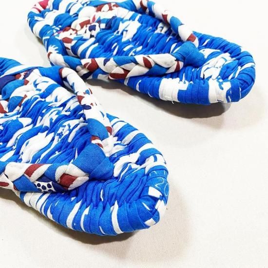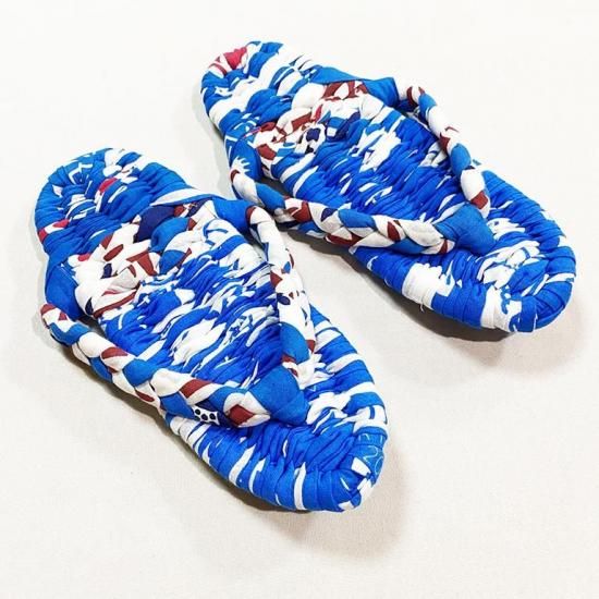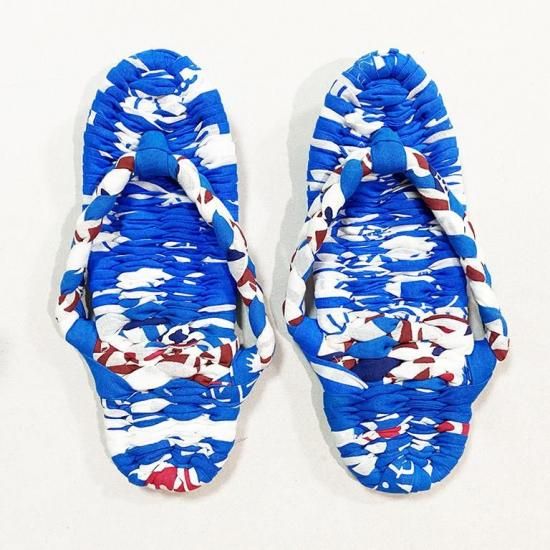 手拭いの生地で編んだ布ぞうりです。生地をたくさん使って作られた、お洒落な布ぞうりです。