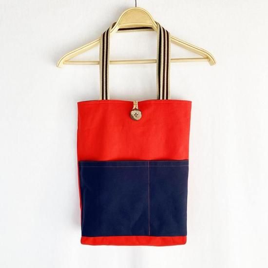 内側はカラフルな無地の帆布生地で、ポケットもついています。