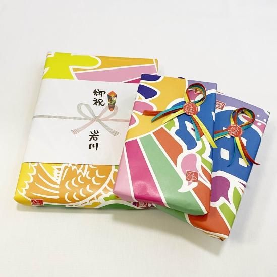 ギフト用の箱に入れて、オリジナルのカラフルな包装紙に包んでお届けします。