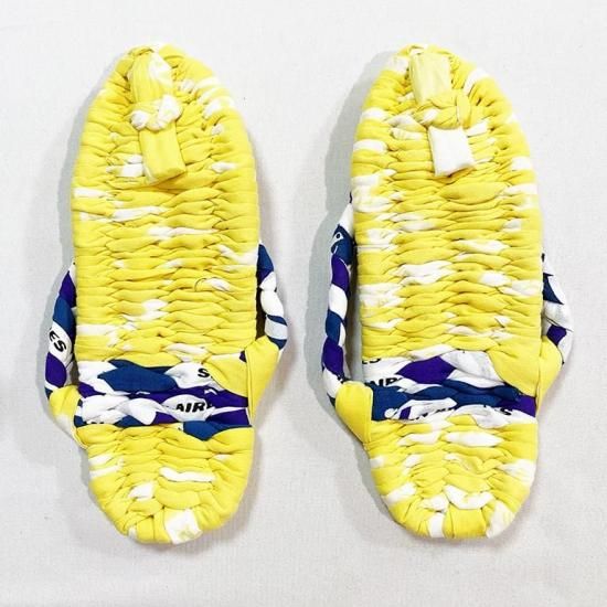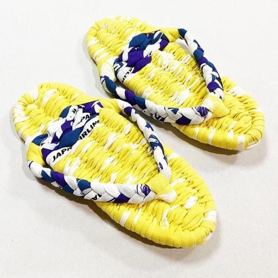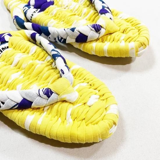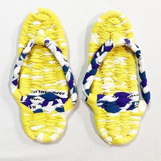 手拭いの生地で編んだ布ぞうりです。生地をたくさん使って作られた、お洒落な布ぞうりです。