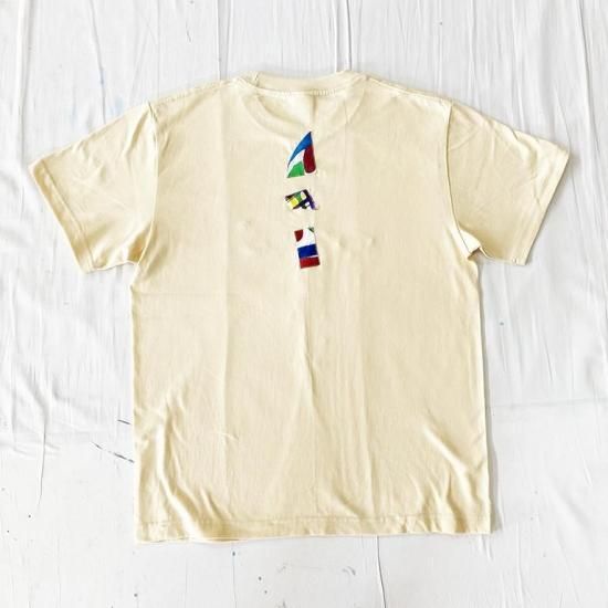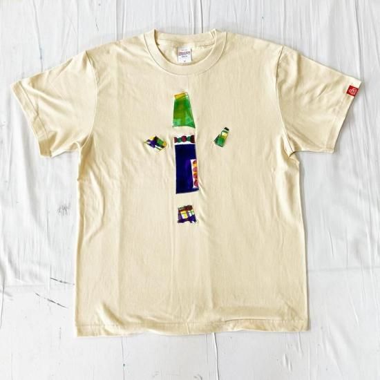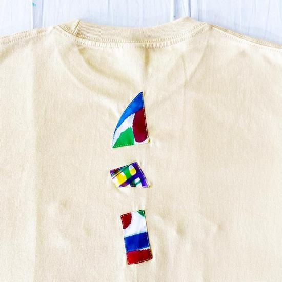 手染めテキスタイルパッチワークTシャツ M ナチュラルA