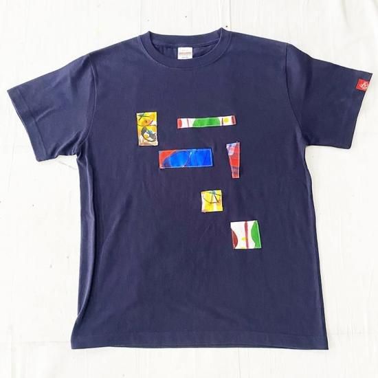 手染めテキスタイルパッチワークTシャツ S 紺 B